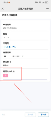 三、提交后等待受访人审批通过即可入校。访客可通过再次扫描二维码,选择“审批状态查询”,填写手机号码,即可查看审批是否通过。