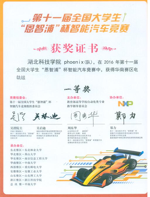 近年来飞思卡尔智能汽车大赛已成为高校大学生具有较高影响力的科技创新实践比赛之一。它融科学性、趣味性和观赏性为一体,以迅猛发展、前景广阔的汽车电子为背景,涵盖自动控制、模式识别、传感技术、电子、电气、计算机、机械与汽车等多学科专业,得到教育部的高度重视和大力支持。(电子与信息工程学院)
