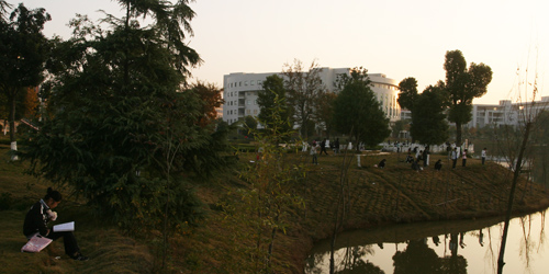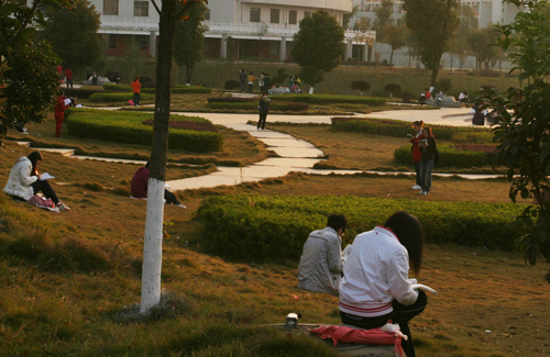 11月10日,阳光穿过六点四十的缝隙,揽月湖畔的读书声,在别人的酣睡中渐起。去年这个时候,坚强女大学生吴清华曾在这里托起梦想。