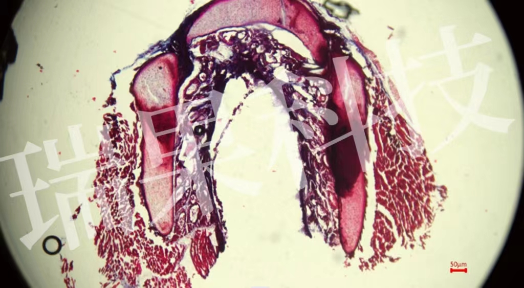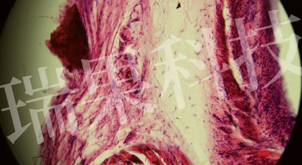 HE染色:苏木精 - 伊红染色法 ( hematoxylin-eosin staining ) ,简称HE染色法 ,石蜡切片技术里常用的染色法之一 。苏木精染液为碱性 ,主要使细胞核内的染色质与胞质内的核酸着紫蓝色 ;伊红为酸性染料 ,主要使细